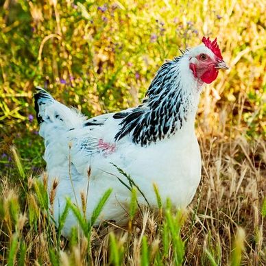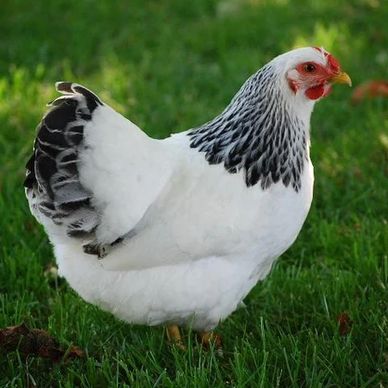 Columbian Wyandotte Chickens are a dual-purpose breed primarily used for egg production. They are a docile bird that lay 180-260 medium brown eggs per year. Roosters generally weigh 8.5lbs and hens 6.5lbs. The breed originated in the United States and is APA recognized. They are shown in the American Class. Columbian Wyandotte Chickens tend to go broody.