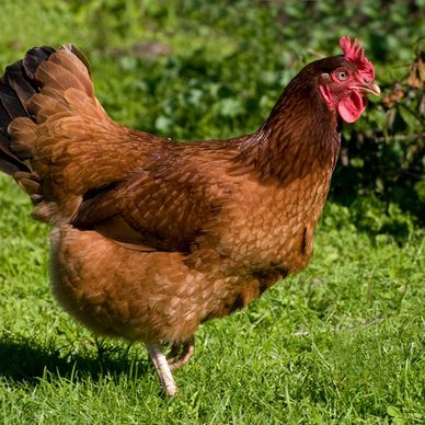 Red Sex Link Chickens are an auto-sexing breed that are primarily used for egg production. They are an active bird that lay 200-280 large light brown eggs per year. Roosters generally weigh 8.5lbs and 6.5hens lbs. The breed originated in the United States and is not APA recognized. Red Sex Link Chickens are non-setters and will not go broody.