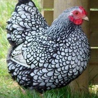 Black Laced Silver Wyandotte Chickens are a dual-purpose breed primarily used for egg production. They are a docile bird that lay 180-260 medium brown eggs per year. Roosters generally weigh 8.5lbs and hens 6.5lbs. The breed originated in the United States and is APA recognized. They are shown in the American Class. Black Laced Silver Wyandotte Chickens tend to go broody.
