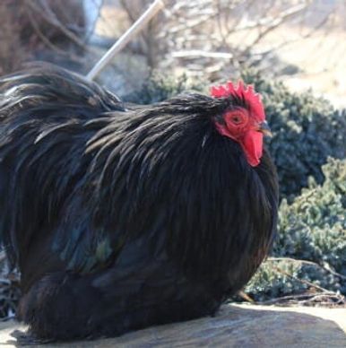 Black Cochin Chickens are an ornamental breed that make great pets. They are a friendly bird that lay 110-160 medium to large brown eggs per year. Roosters generally weigh 11lbs and hens 8.5lbs. The breed originated in Asia and is APA recognized. They are shown in the Asiatic Class. Black Cochin Chickens tend to go broody.