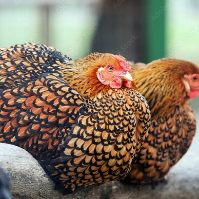 Black Laced Gold Wyandotte Chickens are a dual-purpose breed primarily used for egg production. They are a docile bird that lay 180-260 medium brown eggs per year. Roosters generally weigh 8.5lbs and hens 6.5lbs. The breed originated in the United States and is APA recognized. They are shown in the American Class. Black Laced Gold Wyandotte Chickens tend to go broody.