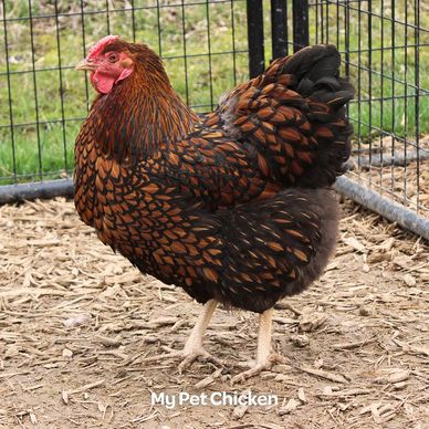 Black Laced Red Wyandotte Chickens are a dual-purpose breed primarily used for egg production. They are a docile bird that lay 180-260 medium brown eggs per year. Roosters generally weigh 8.5lbs and hens 6.5lbs. The breed originated in the United States and is not APA recognized. They are shown in the American Class. Black Laced Red Wyandotte Chickens tend to go broody.