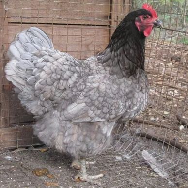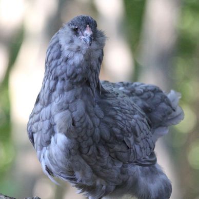 Blue Cochin Chickens are an ornamental breed that make great pets. They are a friendly bird that lay 110-160 medium to large brown eggs per year. Roosters generally weigh 11lbs and hens 8.5lbs. The breed originated in Asia and is APA recognized. They are shown in the Asiatic Class. Blue Cochin Chickens tend to go broody.