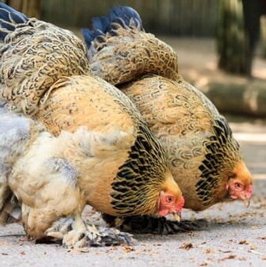Buff Brahma Chickens are a dual-purpose breed that can make great mothers. They are a docile bird that lay 150+ medium to large brown eggs per year. Roosters generally weigh 12lbs and hens 9.5lbs. The breed originated in Asia and is APA recognized. They are shown in the Asiatic Class. Buff Brahma Chickens tend to go broody.
