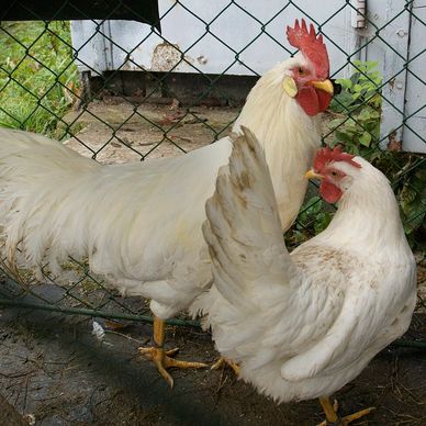 White Leghorn Chickens are primarily used for egg production. They are a very active bird that lay 220-300 large to extra-large white eggs per year. Roosters generally weigh 6lbs and hens 4.5lbs. The breed originated in Italy and is APA recognized. They are shown in the Mediterranean Class. White Leghorn Chickens are non-setters and do not go broody.